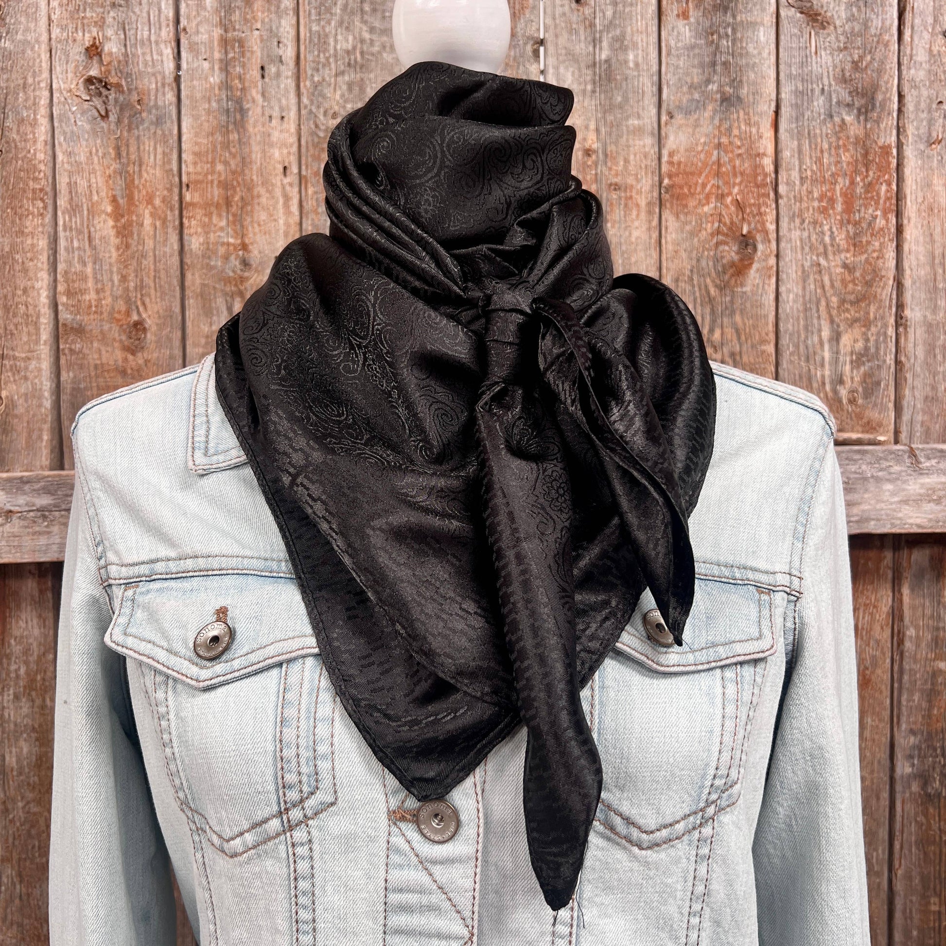 Measuring 35"x35", our Classic Black Jacquard is that extra touch of western style you need to add to your outfit. 100% soft silk-feeling polyester is durable to keep you warm in the cold and fashionable for any occasion. Plus it's machine washable!
