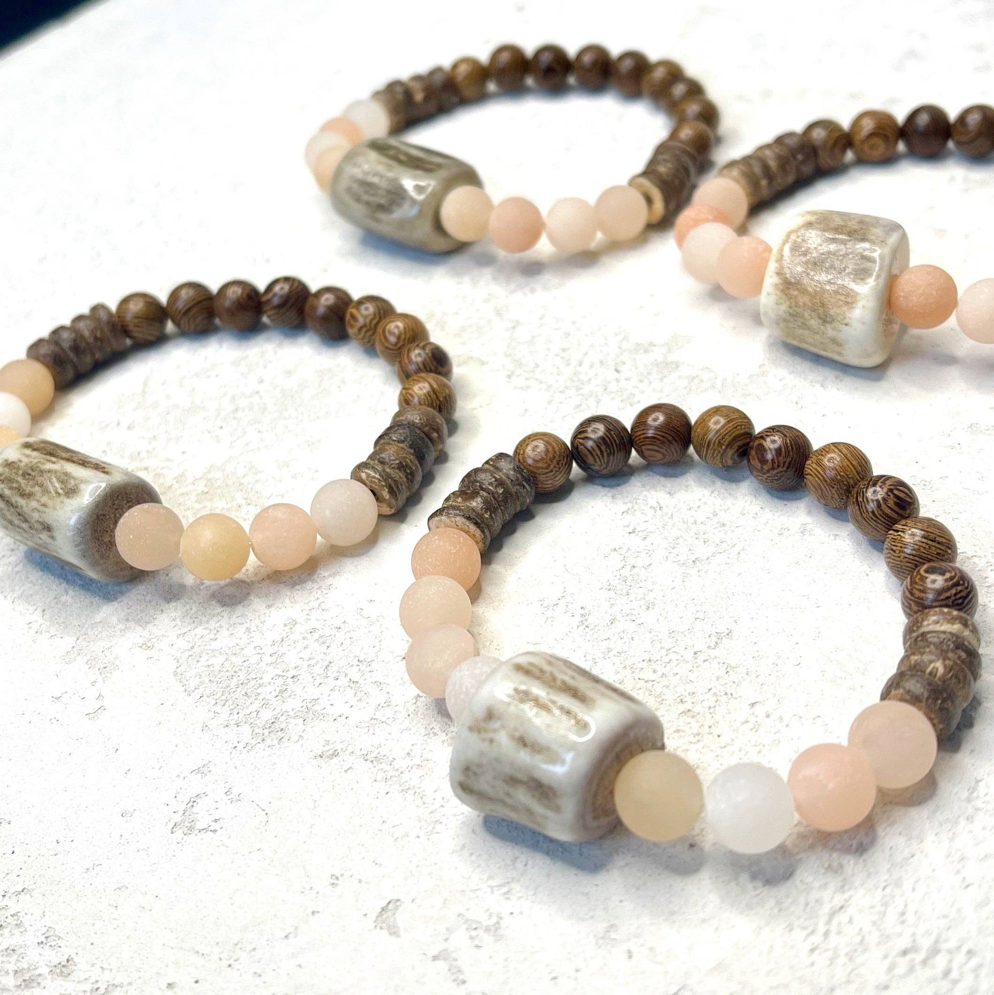 Deer Antler Bead + Gemstone Bracelet. 7 Gemstone options: Pink Moonstone